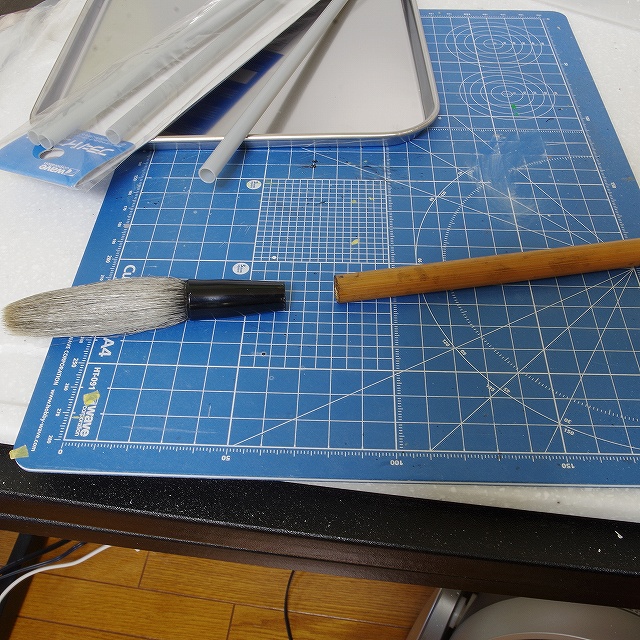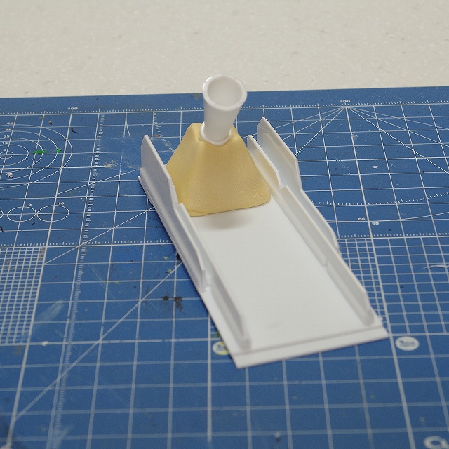 1mmプラ板と”コの字”プラ棒とエポパテを使った台座に