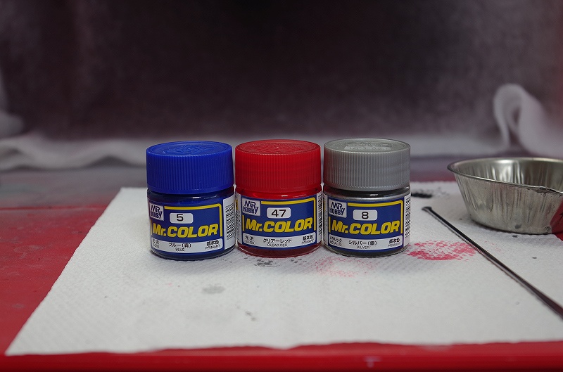 取説に従ってブルー+クリアーレッド+シルバーです。