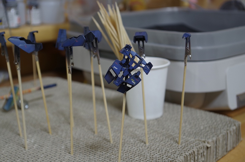 今日はブルーのパーツを塗装して仕上げまで持ち込みます。
