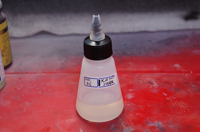 そして、デカール貼りの下準備としてクリアーを塗装します。