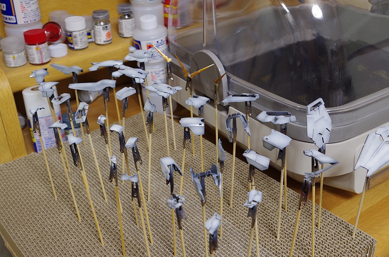 それでもクリアーなら1時間ほどで100個近いパーツは塗れました。
