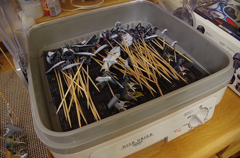 デカールを貼っていない分を先に塗り、その間に乾燥機でデカールを乾燥。