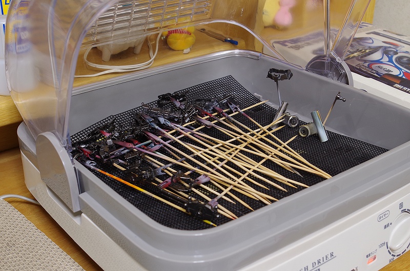 塗ったら早めに乾燥機に入れてシンナー分の揮発を促進させます。