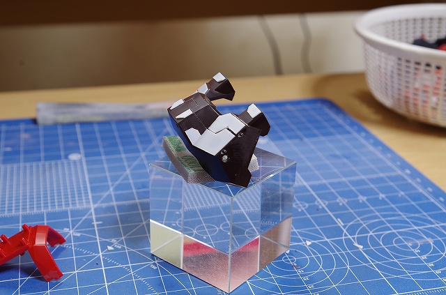 プラ板とスジボリを組み合わせて、複雑な面構成にしました。