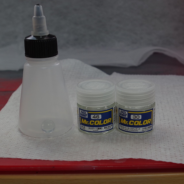 クレオスの光沢クリアーにフラットベースを10%程度混合して