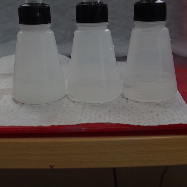 写真で伝わるかどうか微妙ですが、クリアーの透明度の差です。