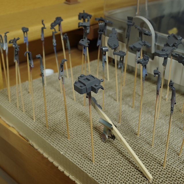 シリンダーの外側パーツは金属っぽくゴールドのツヤツヤ塗装です。