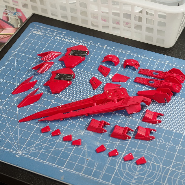 赤のパーツを艶消しで仕上げた状態です。