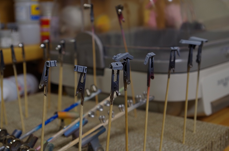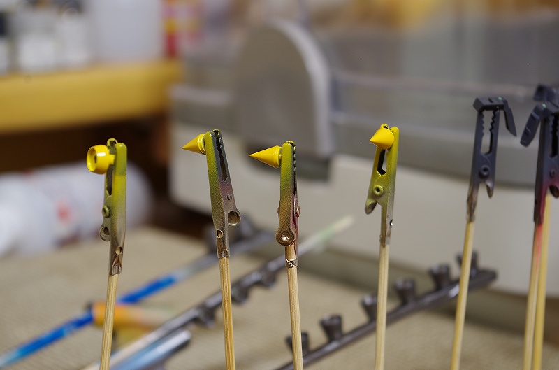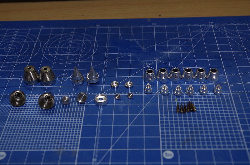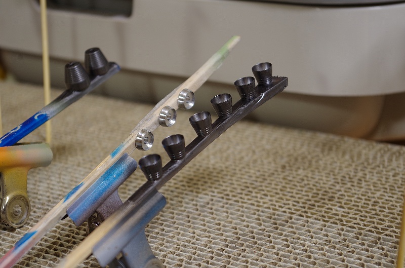 このスパイクと先ほどのフレームはつや消しで仕上げます。