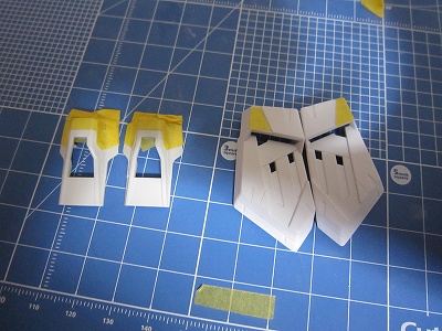 今日切り出したパーツと昨日マスキングしてグレーを塗ったパーツは