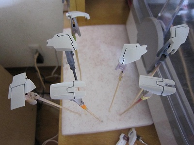 グレーはスミ入れ後の乾燥中なので、新しく白のパーツを切り出していきます。