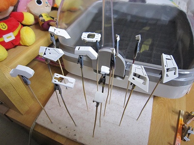 こちらは昨日塗った分で、スミ入れが必要なパーツ。