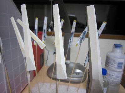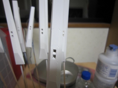 ヒケをパテで埋めて、乾燥後に研いで面を出し、白サフを吹きました。