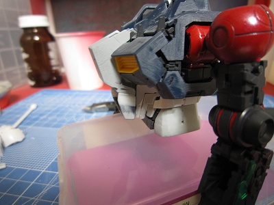 HGガンダムの顔でやりましたが、ラッカーの上からエナメルを塗ると