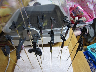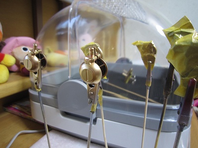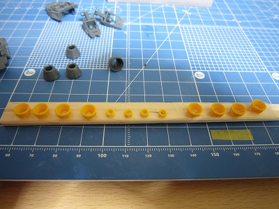 バーニア類は割り箸に両面テープで貼り付けて塗ってみようと思うので