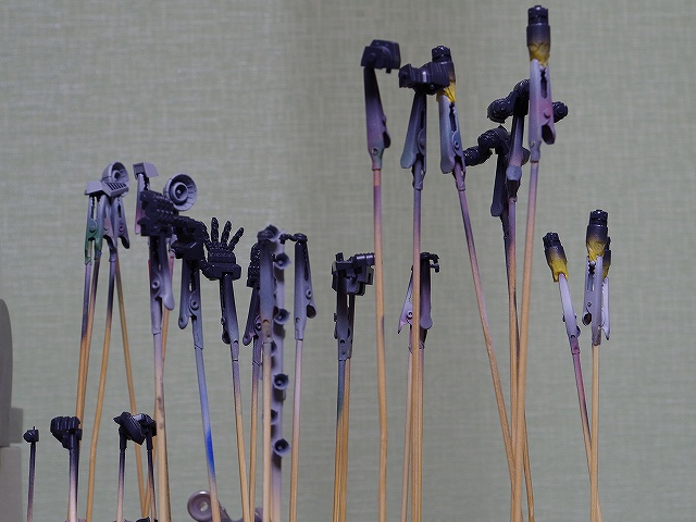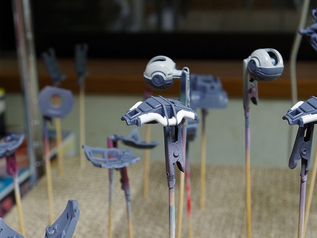 ハンドパーツやバーニア周辺、あと一部フレームパーツも塗っていきます。