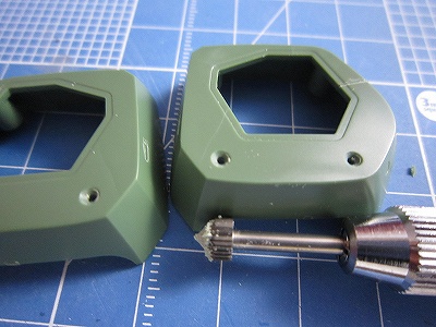 同じ胸パーツのサイドにあった丸モールドを貫通(1.0mm)させ、