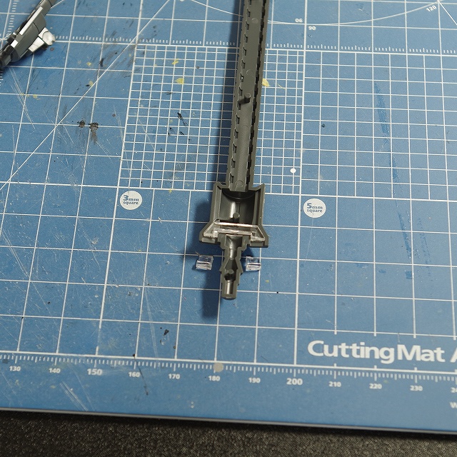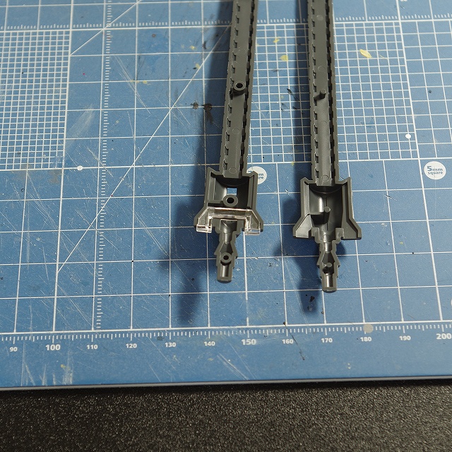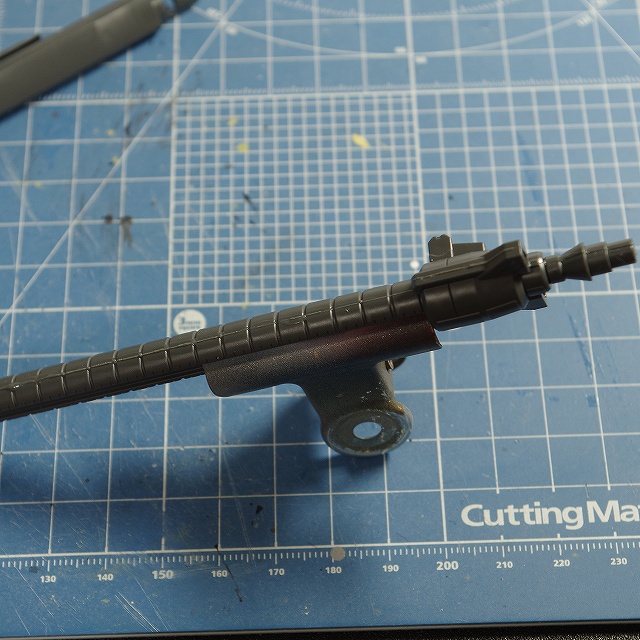 このパーツ、モナカで合わせ目が目立つので合わせ目消しを行います。