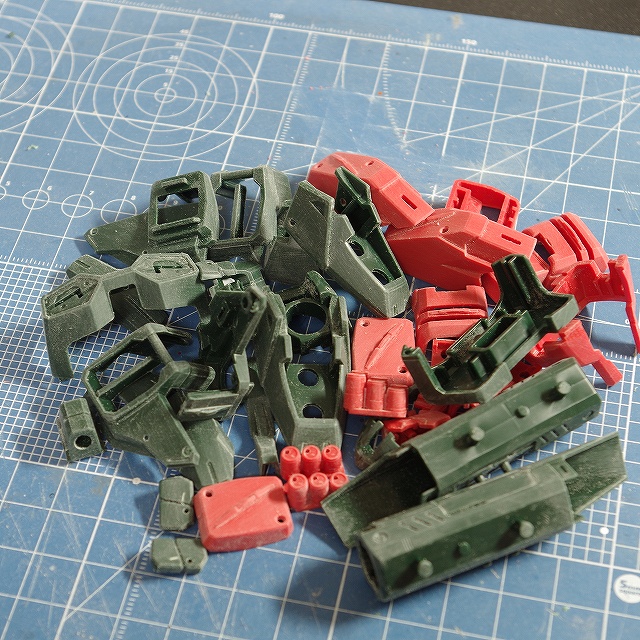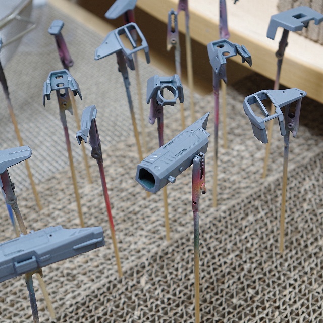 バスターの製作は緑とオレンジパーツの表面処理を進めています。