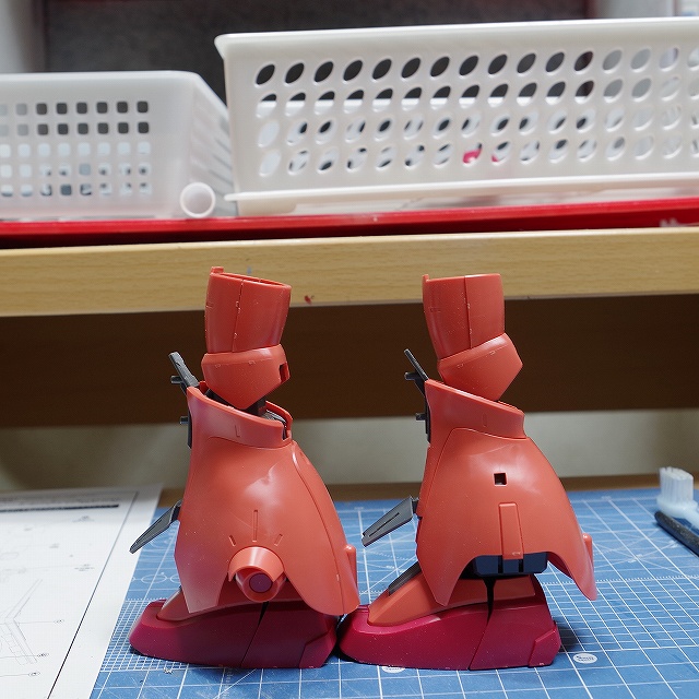 干渉箇所をアチコチ削って、少しだけですが逆間接方向に曲がるようになりました。