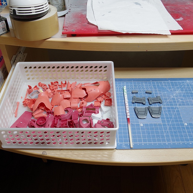とりあえず、明日は外装をサフって、フレームの処理ですねぇ。