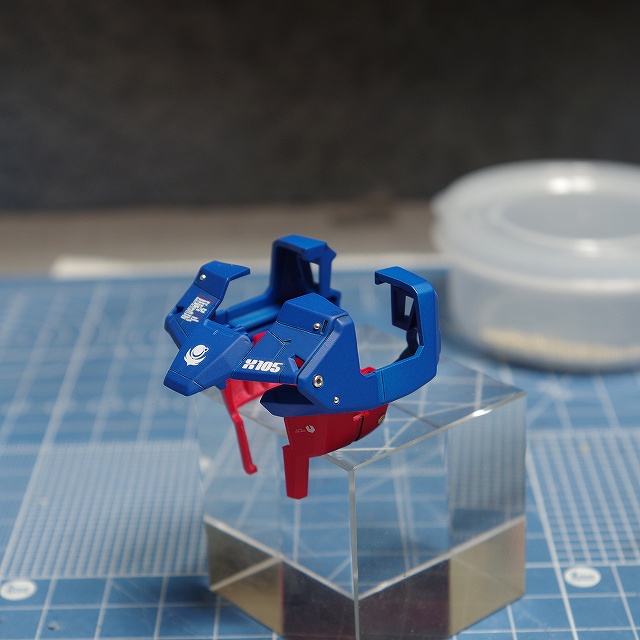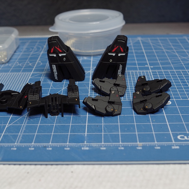 さて、ストライクの方は、昨日デカール貼ったパーツをつや消しで仕上げました。