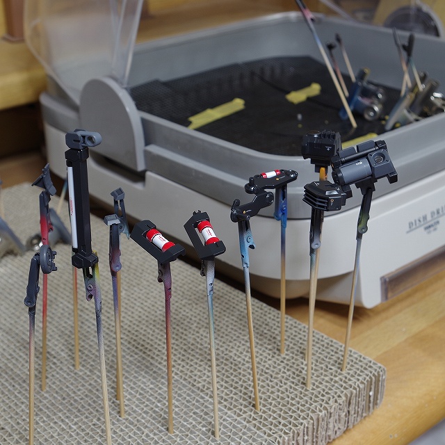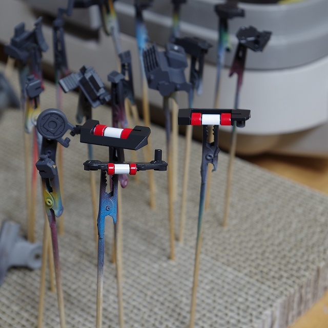 デカールを一晩乾かすので、クリアーパーツの準備を。